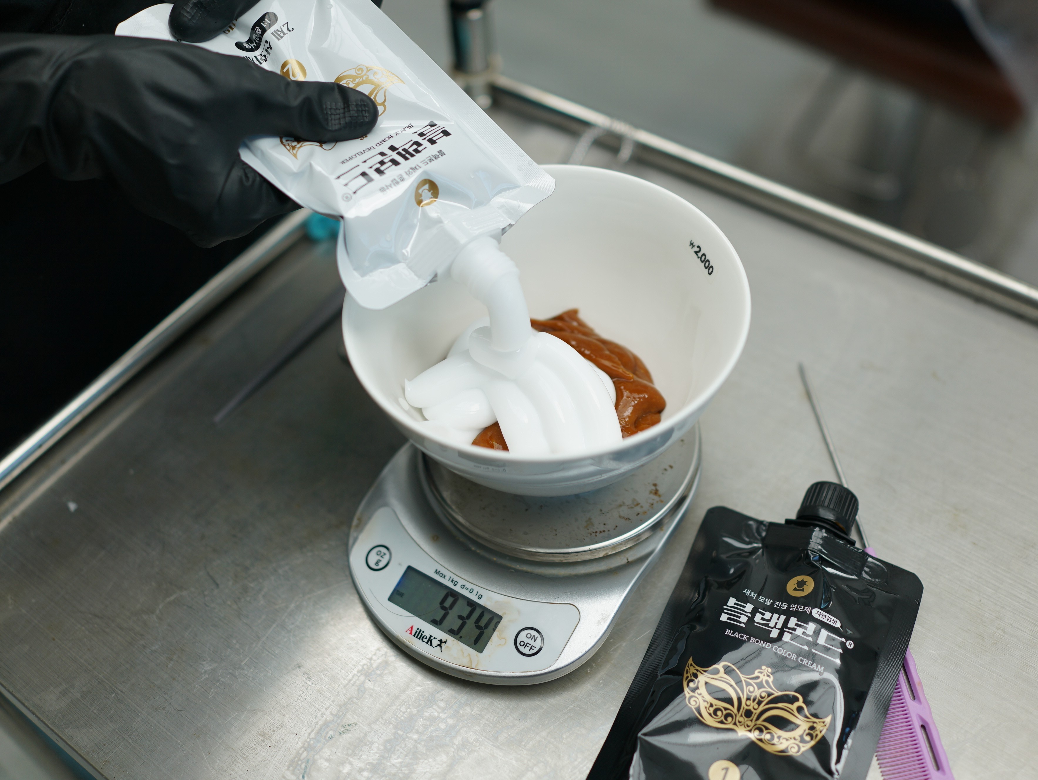 블랙본드로 윤기나가 염색을 진행합니다.